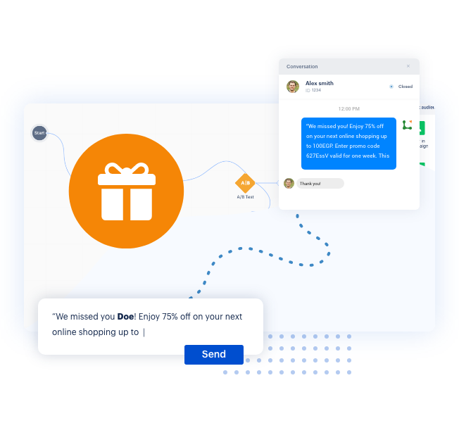 Lagorta tracks your customers journeys and actions, and then helps you act accordingly. You can create automated offers or promotions to be sent to your customers, based on certain events or actions they take throughout their journeys.