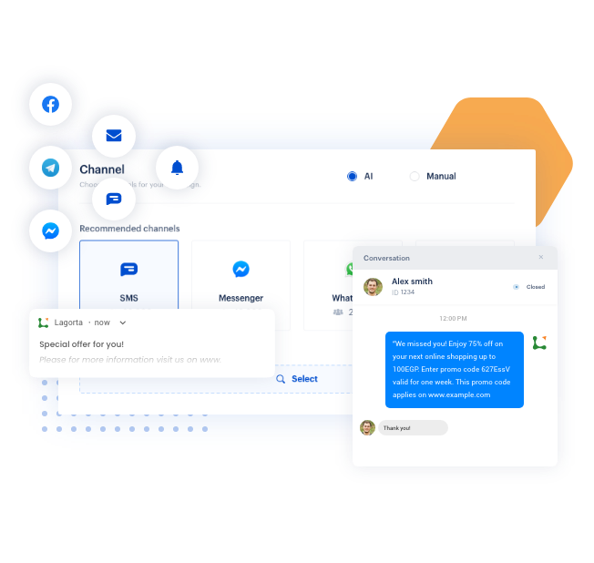 Your customer journey; track your campaign workflow with real-time metrics and get instant and reliable recommendations to refine your customer journey.