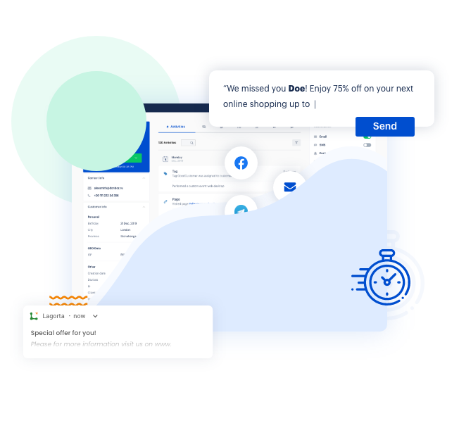 Through Lagorta, you can manage marketing campaigns that run on different platforms, such as e-mails, social media, or mobile SMSs. Lagorta also helps you measure the campaigns’ performance through the different platforms.